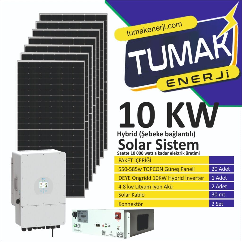 Çalıştırabileceğiniz Cihazlar 10 adet Led Ampül : Günde 8 saat 2 adet Büyük Buzdolabı : Günde 24 saat 1 adet LED TV : Günde 8 saat 1 adet 1Hp Hidrafor : Günde 2 saat Bulaşık Mak. : Haftada 2 kez Çamaşır Mak. : Haftada 2 kez Küçük Ev Aletleri : Gündüz Paket İçeriği: 600W TOPCon…