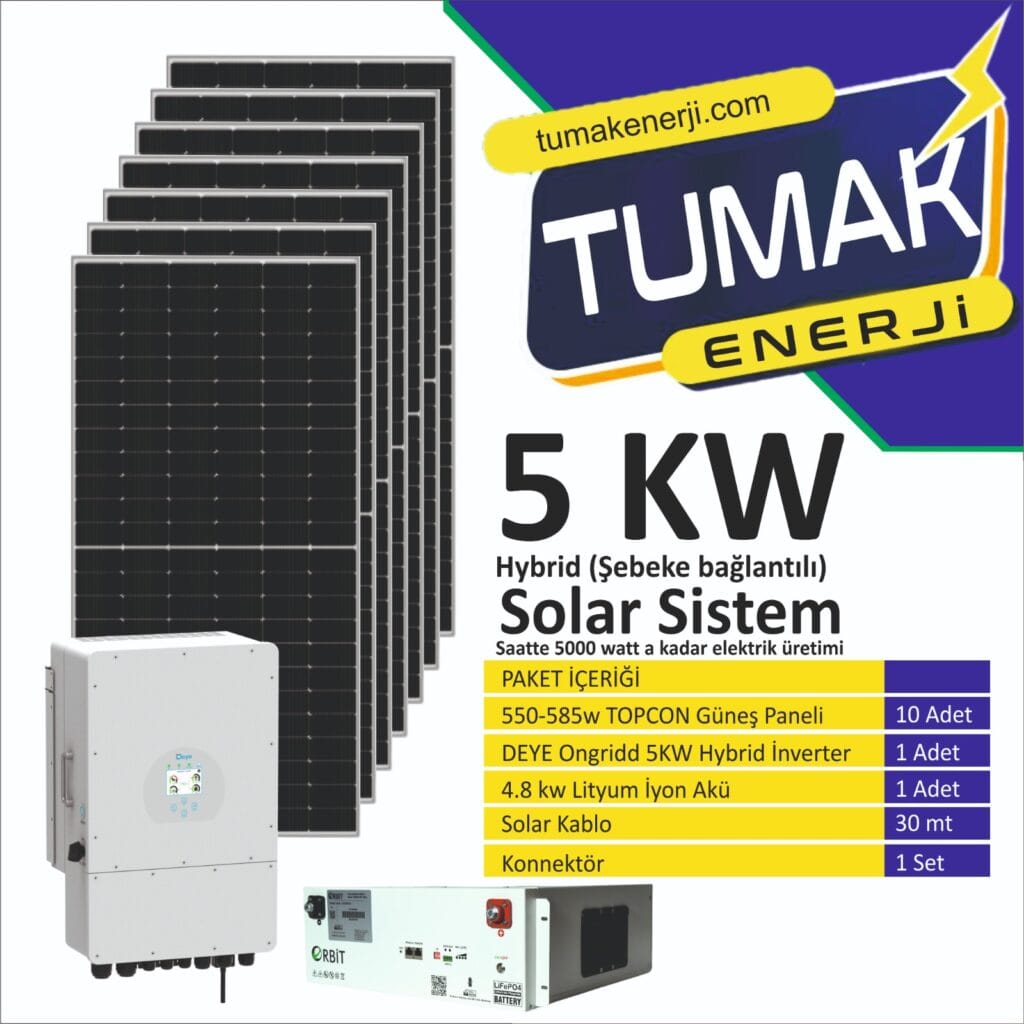 Çalıştırabileceğiniz Cihazlar 10 adet Led Ampül : Günde 8 saat 2 adet Büyük Buzdolabı : Günde 24 saat 1 adet LED TV : Günde 8 saat 1 adet 1Hp Hidrafor : Günde 2 saat Bulaşık Mak. : Haftada 2 kez Çamaşır Mak. : Haftada 2 kez Küçük Ev Aletleri : Gündüz Paket İçeriği: 600W TOPCon…